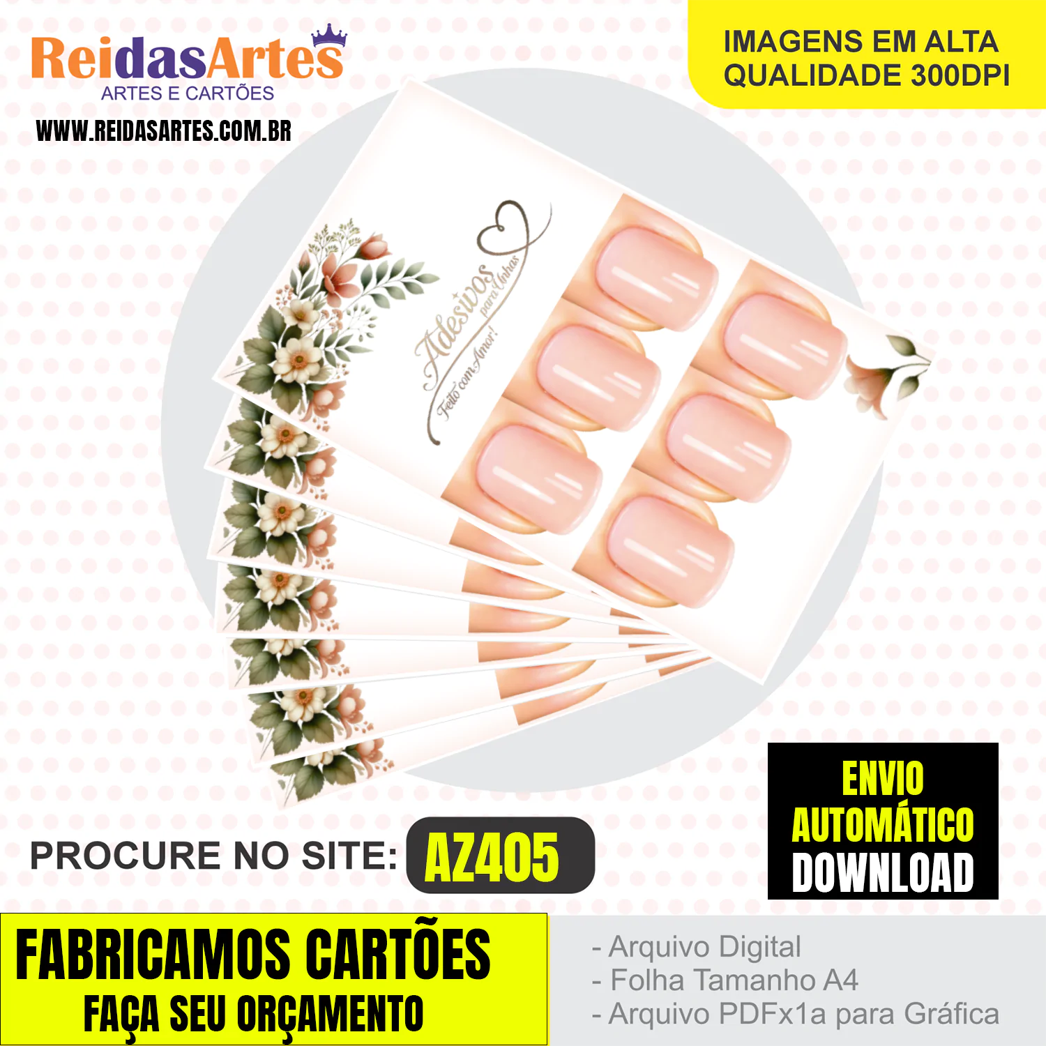 Arte para cartões de adesivos de unhas, cartões de agradecimento e outros.