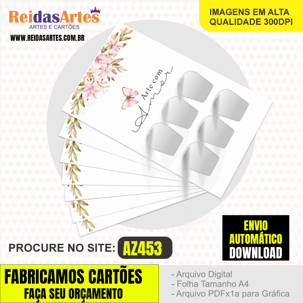 ✨ Compre sua arte 24 horas por dia. 🤝 Use o cupom CLIENTE25 e ganhe 25% de DESCONTO. 💫 Fabricamos seus cartões e enviamos para sua casa. ⚙️️Personalize sua arte preferida com seus dados. 🚀 Artes por apenas R$2,99.